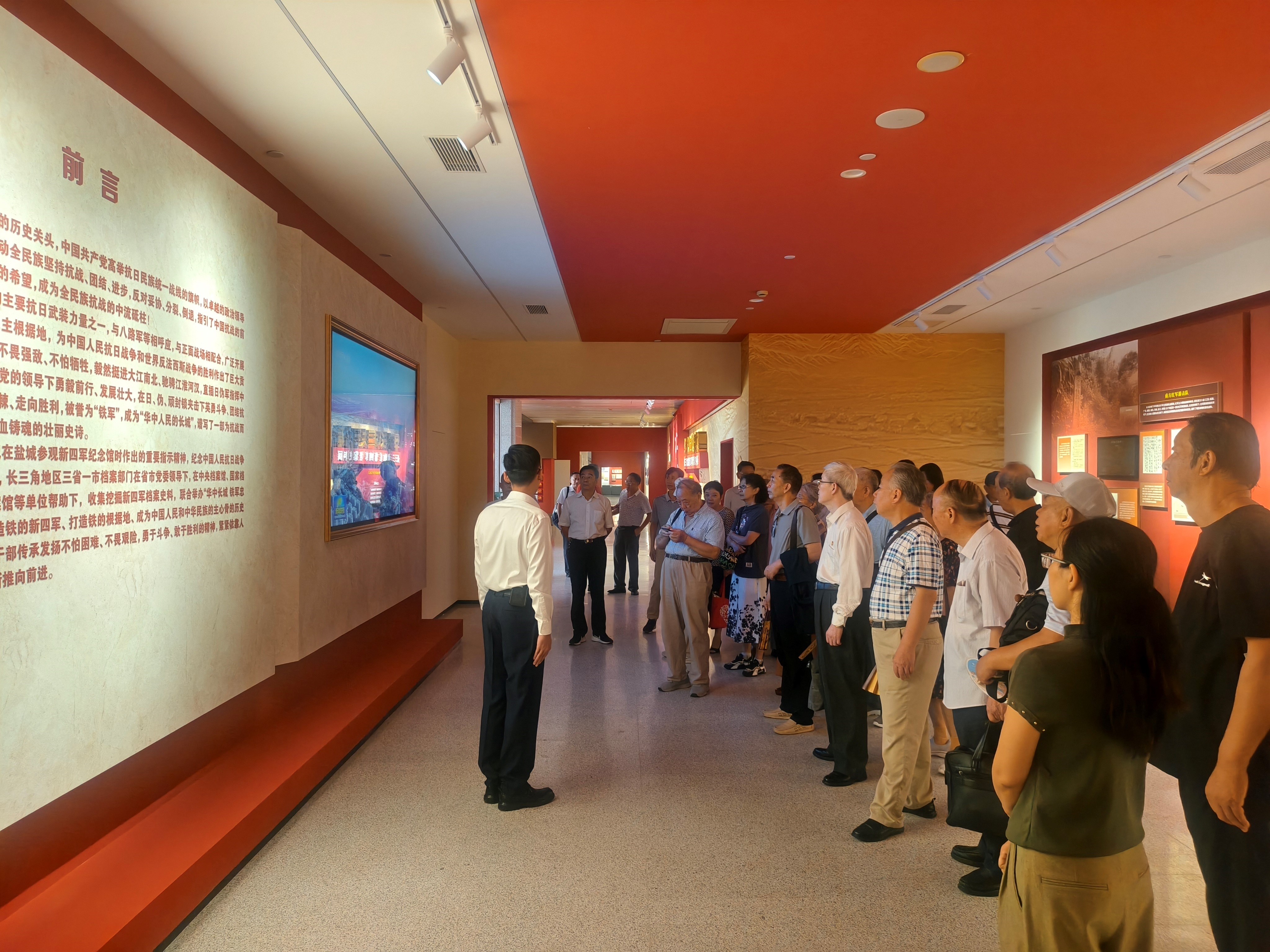 在纪念中国人民抗日战争暨世界反法西斯战争胜利80周年之际,为重温抗战历史、弘扬伟大抗战精神,8月29日,我院退休党支部联合老干部处党支部赴江苏省档案馆开展主题党日活动。省档案馆副馆长薛春刚、接收保管处处长蔡和与人事处(老干部处)二级调研员沈付君一同参观。