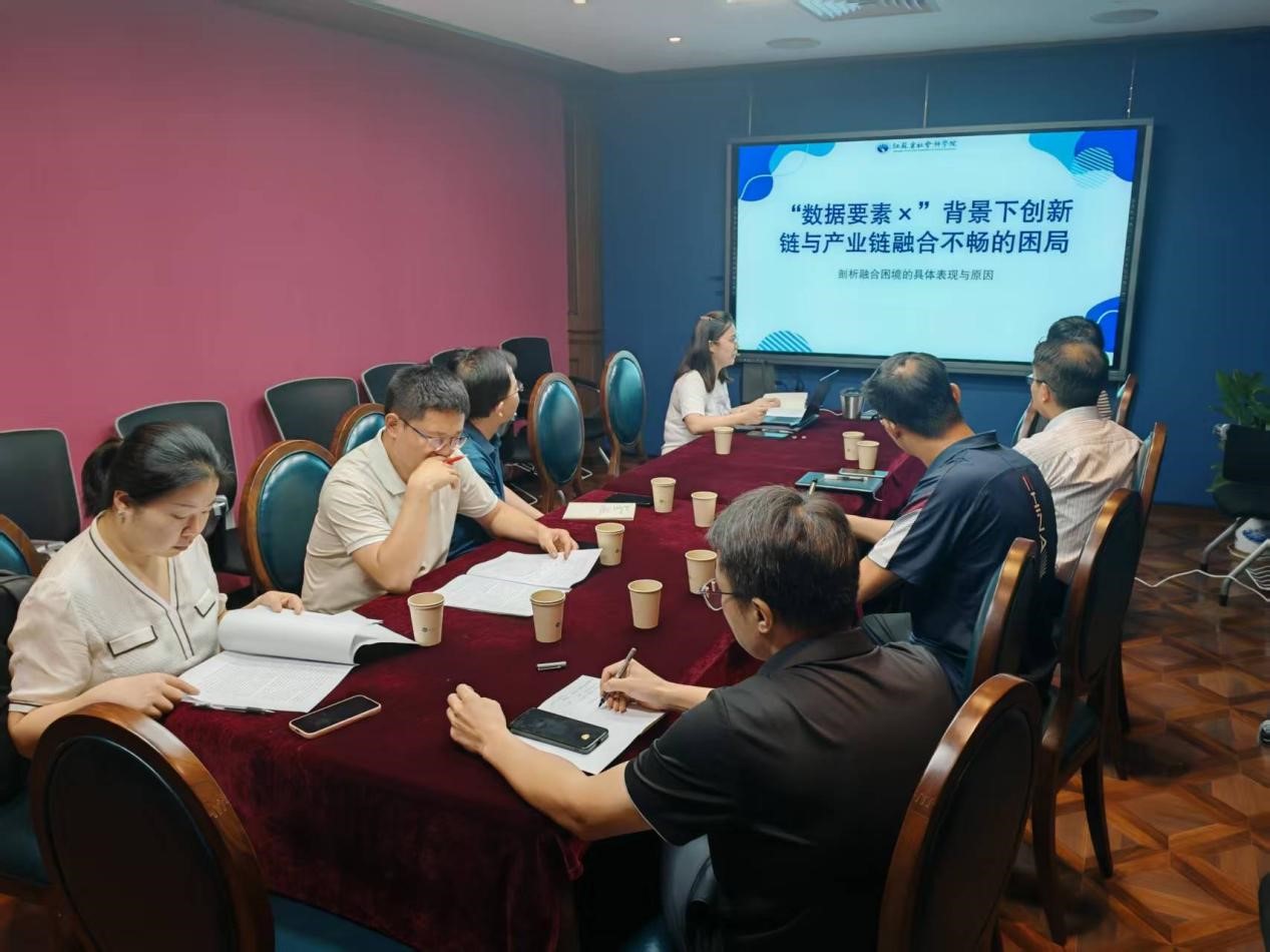 在研讨交流环节,黄婷婷以“数据要素市场化破解‘双链’融合困境的逻辑机理与靶向路径”为题作主旨汇报。她以全球科技话语权争夺展开话题,从宏观政策和现实挑战阐释了创新链与产业链深度融合的重要意义,基于“双链”融合的困境梳理,详细论述了数据要素市场化破解困境的逻辑机理和靶向路径。《江海学刊》副主编战炤磊、《世界经济与政治论坛》主编李思慧、《现代经济探讨》编辑部候祥鹏、《学海》编辑部于文领等分别点评并提出修改建议。与会人员围绕沙龙主题展开了热烈讨论。