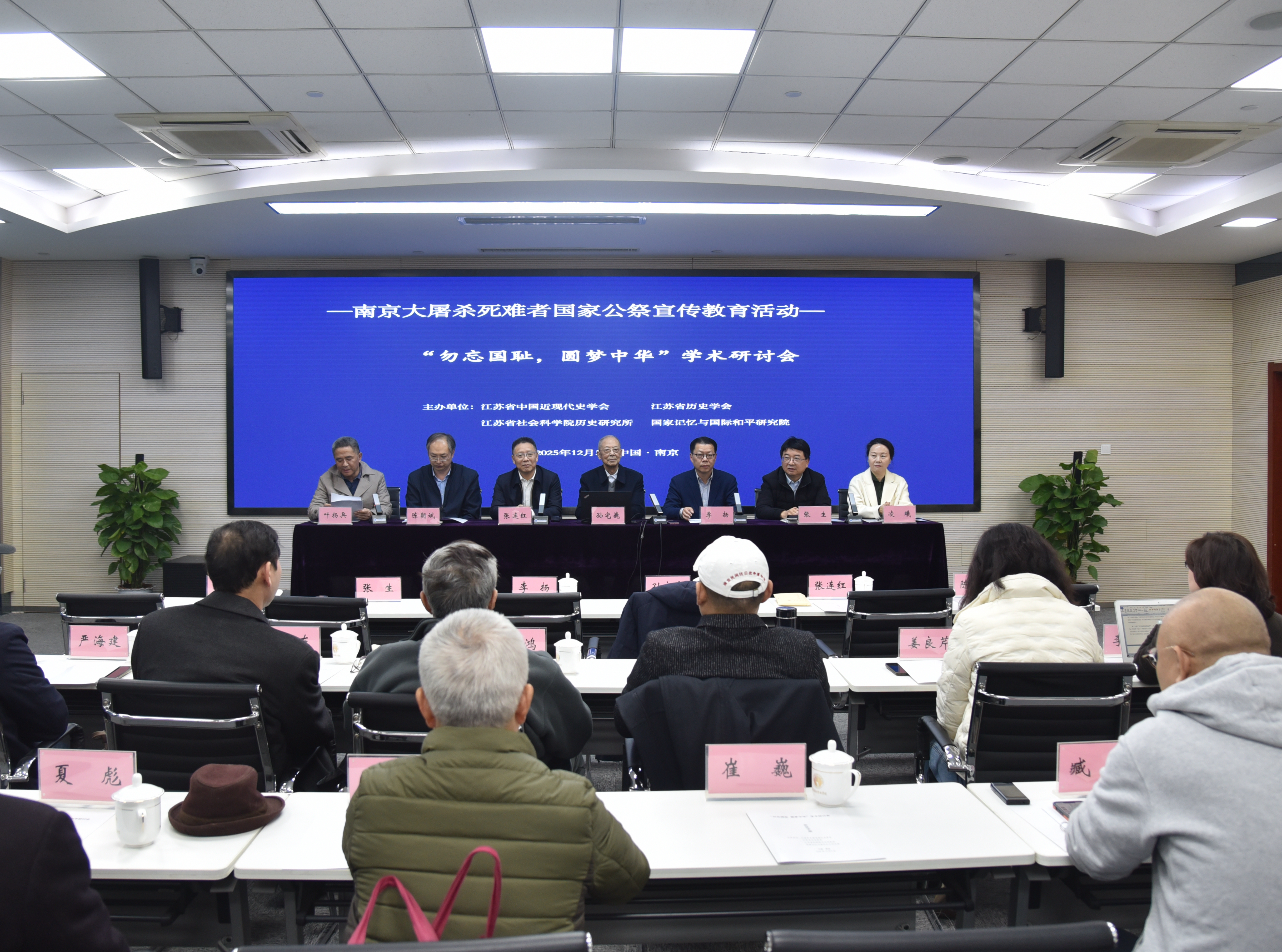 125日,在第十二个侵华日军南京大屠杀死难者国家公祭日来临之际,“勿忘国耻、圆梦中华”学术研讨会在南京隆重召开。本次会议由江苏省中国近现代史学会、江苏省历史学会、江苏省社科院历史研究所、国家记忆与国际和平研究院联合主办,来自省社科院、南京大学、南京师范大学、侵华日军南京大屠杀遇难同胞纪念馆、中国第二历史档案馆等单位的近50位专家学者齐聚一堂,围绕南京大屠杀历史研究、记忆传播与和平教育展开深度研讨。