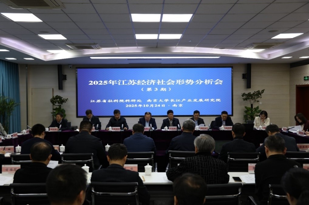 10月24日,第3期江苏经济社会形势分析会成功召开。南京大学长江产业发展研究院常务院长刘志彪教授,复旦大学公共经济学系主任封进教授,省金融研究院名誉院长、南京大学商学院范从来教授,省商务厅副厅长倪海清,省人社厅二级巡视员张斌峰,省政府研究室二级巡视员刘希泽,省政协经济委员会副主任孙志高,省统计局综合处处长高斌,省工信厅综合规划处副处长李震,以及我院领导班子全体成员、各研究部门负责人和科研人员代表90余人参加会议,围绕“江苏‘十五五’经济社会发展的形势研判与战略谋划”这一主题展开深入研讨交流。党委书记、院长尚庆飞出席会议并致欢迎辞,党委委员、副院长王月清主持会议。
