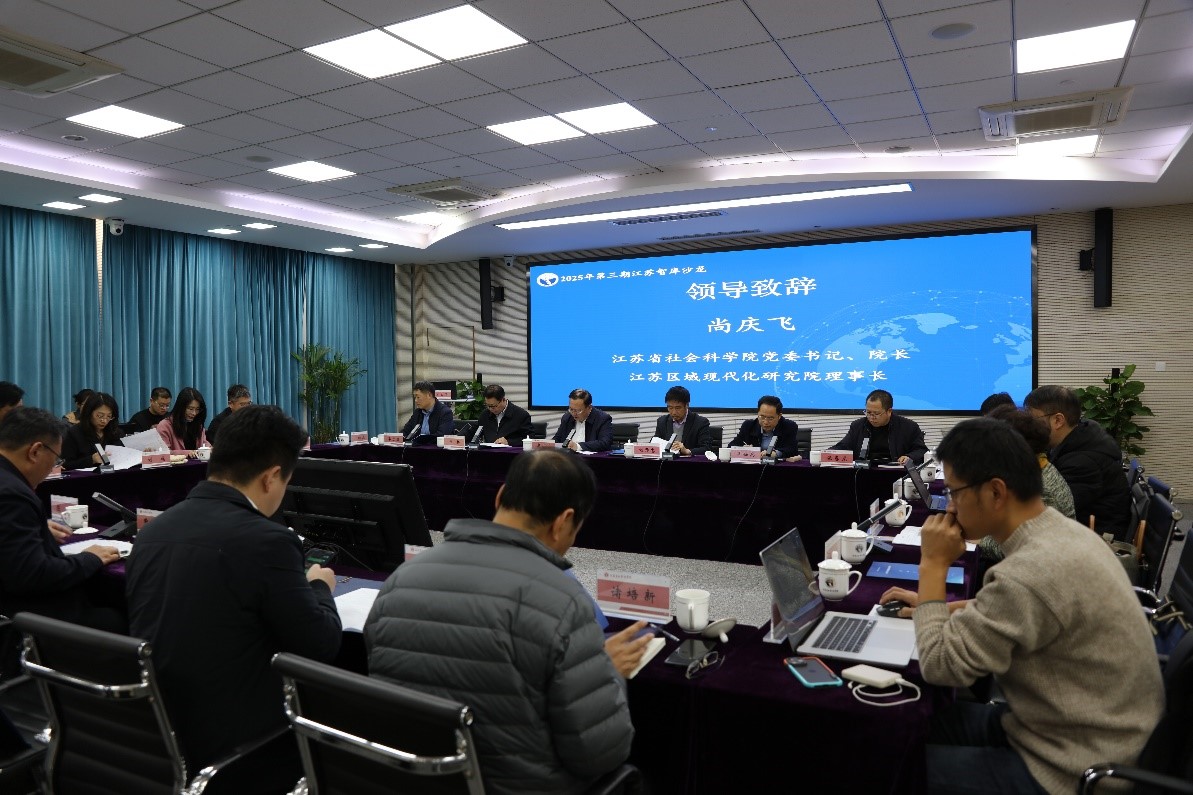 12月9日,由我院和江苏省社科联联合主办,江苏区域现代化研究院、江苏省智库研究与交流中心、江苏转型升级研究基地、院人工智能与社会科学创新中心共同承办的2025年第三期江苏智库沙龙在我院举行。本期沙龙的主题是“人工智能与大数据赋能新型智库建设”。党委书记、院长、区域现代化研究院理事长尚庆飞,省社科联党组成员、副主席刘西忠,省哲社规划办(智库办)主任许佃兵分别致辞。开幕式由党委委员、副院长、江苏区域现代化研究院院长李扬主持。