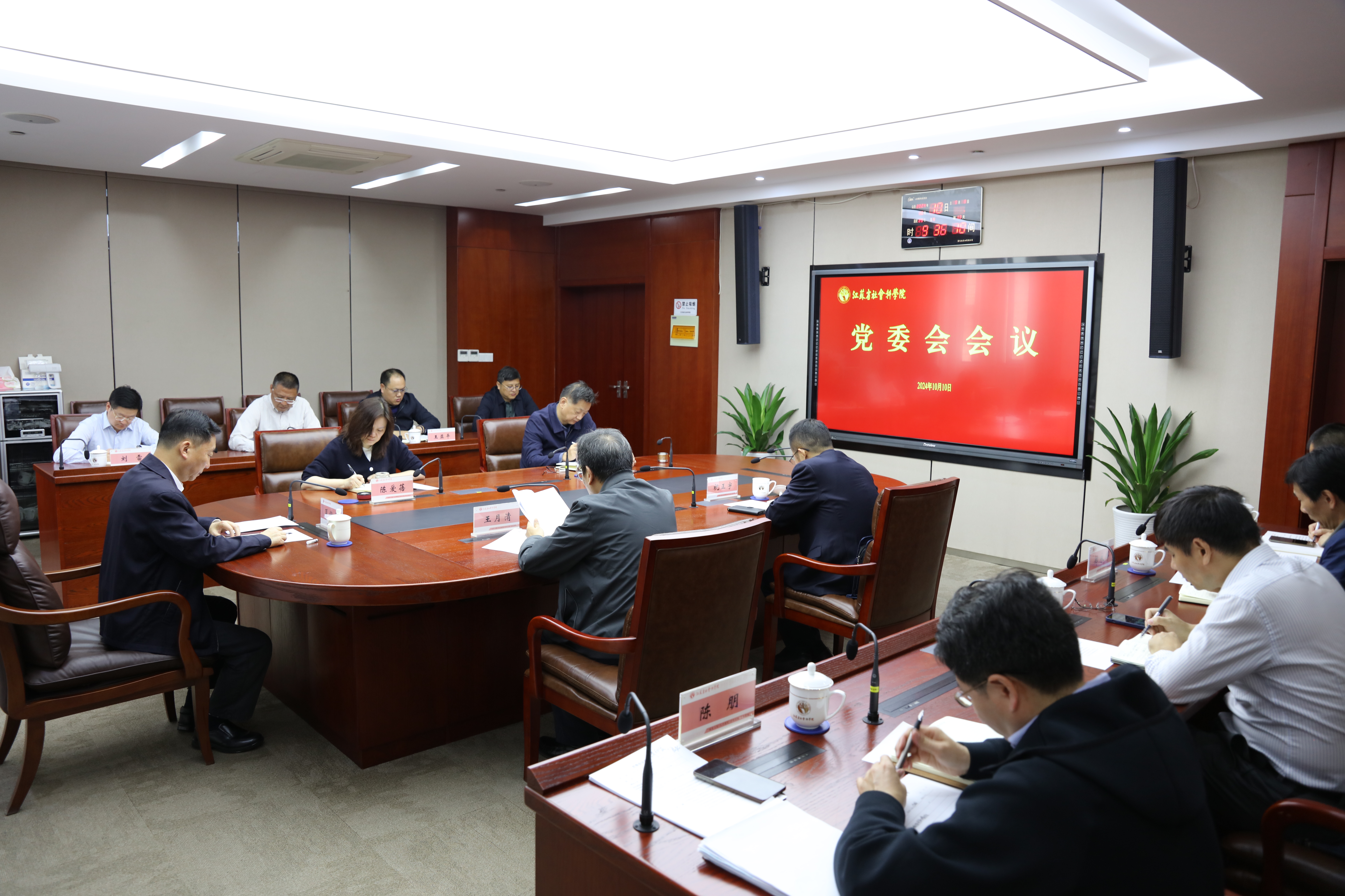 10月10日,党委书记、院长夏锦文主持召开党委会会议,院领导班子成员,省纪委监委派驻省委宣传部纪检监察组副组长祝正宇及有关同志,各职能部门主要负责同志参加会议。